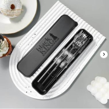 - A stainless steel straw and cleaner for eco-friendly refreshment